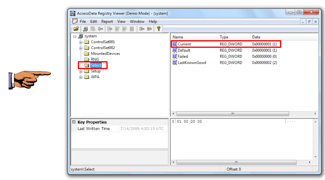 However, this key is not visible in an acquired registry. Instead, you will see two control sets, and you must determine which one was "Current" at the last login.