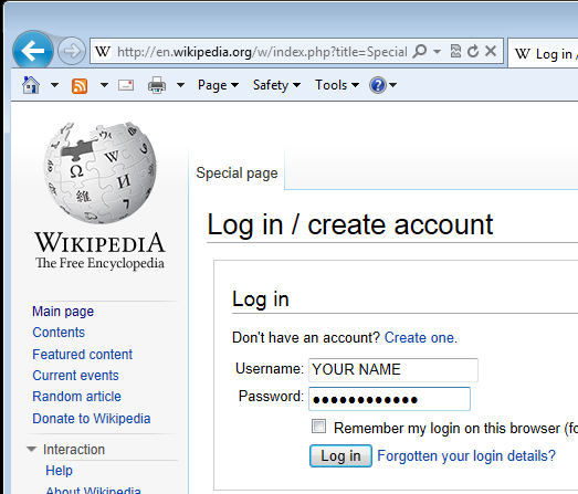 Enter your own name for the user name, enter the password SWORDFISH123, as shown below.