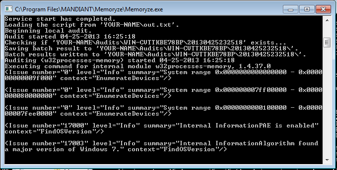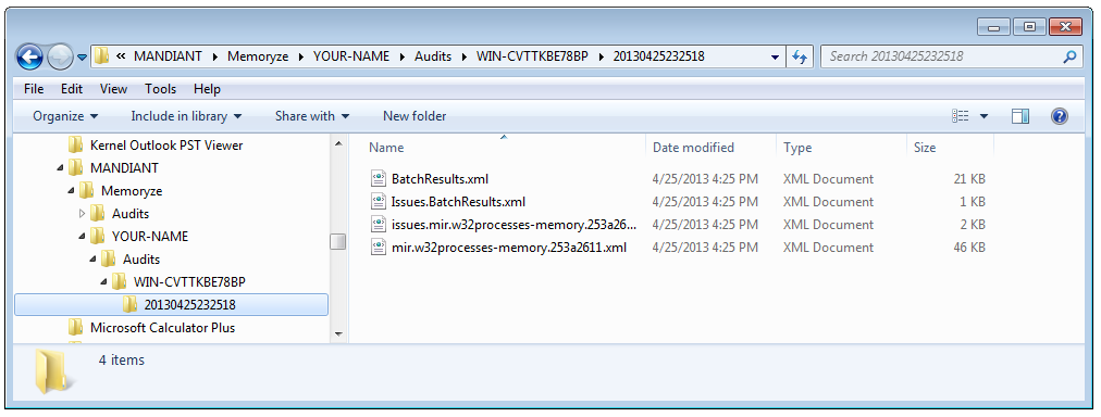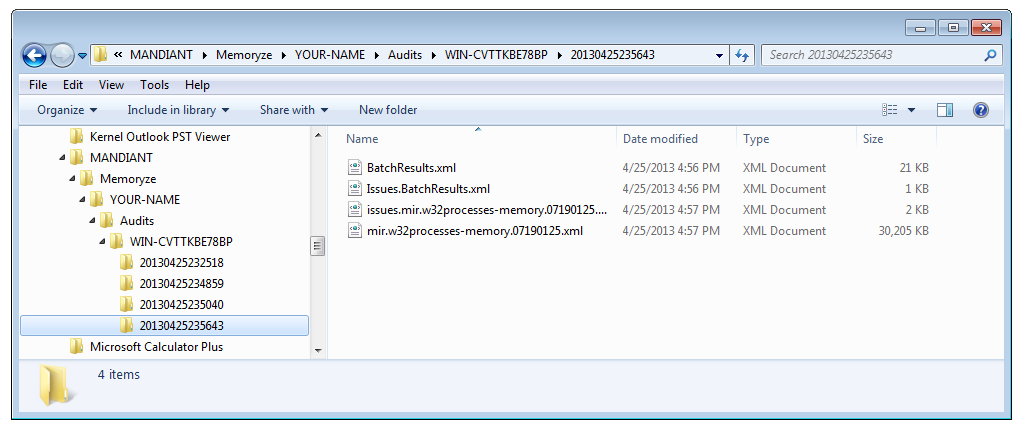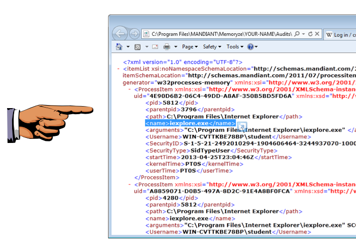 Navigate to C:\Program Files\MANDIANT\Memoryze\YOUR-NAME\Audits