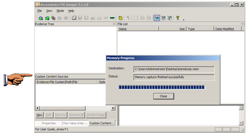 You should see a box saying "Memory capture finished successfully", as shown below: