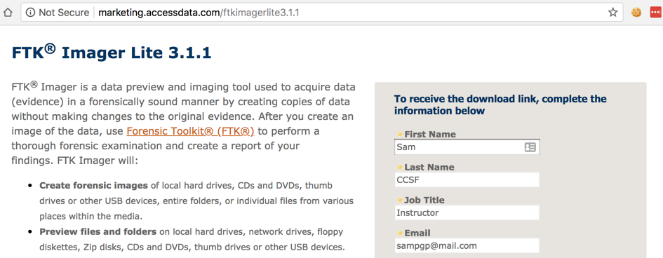 Open your email to download the file. Save the FTK Imager file in your Downloads folder.