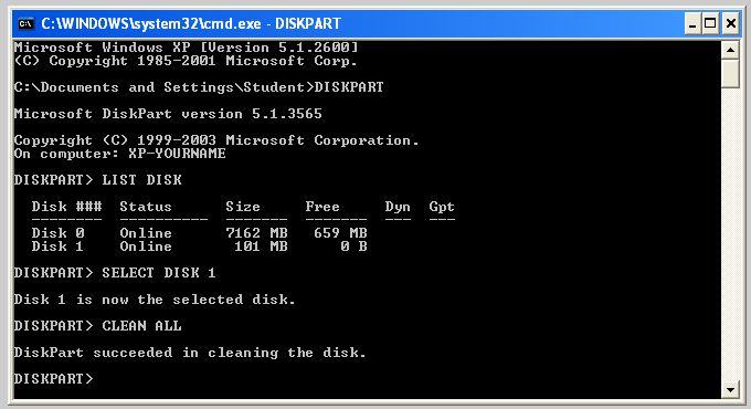 Read the output to find the new 101 MB disk you want to clean--when I did it, it was Disk 1. You don't want to erase the wrong disk by accident!