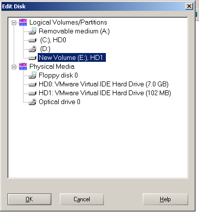 In the "Edit Disk" box, click "New Volume", and then click the OK button.
