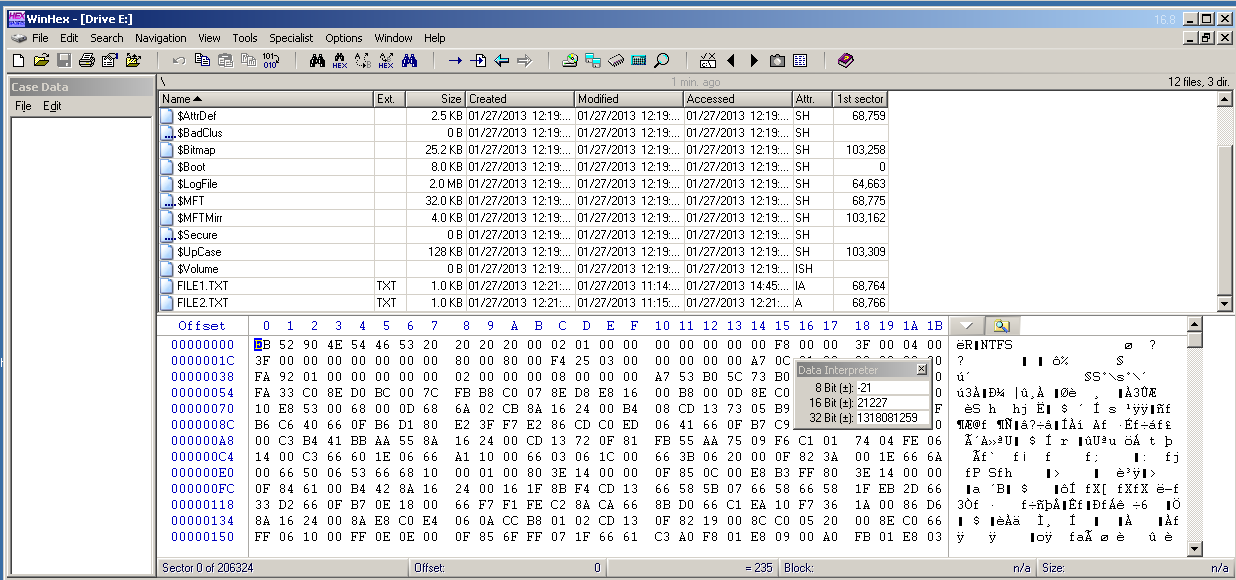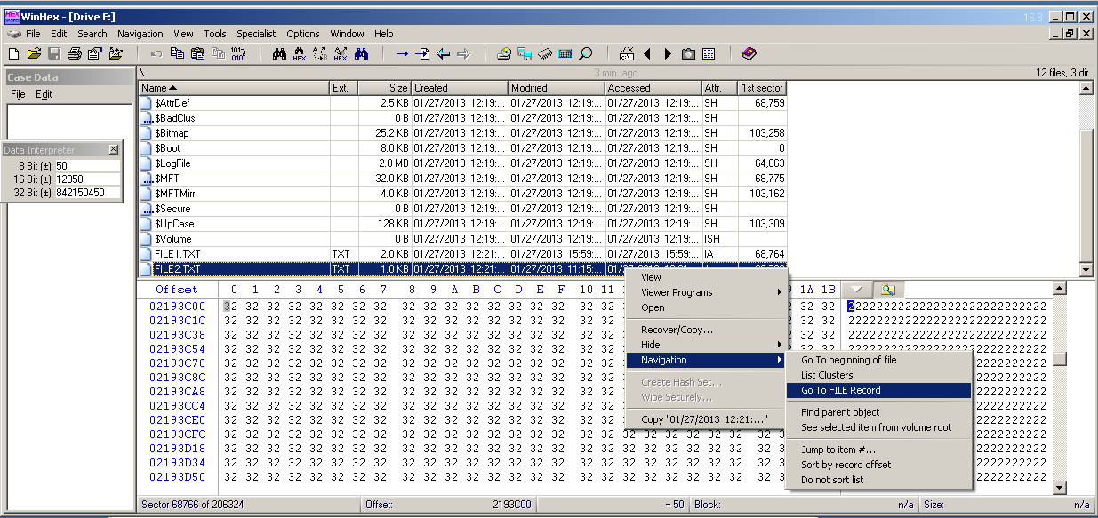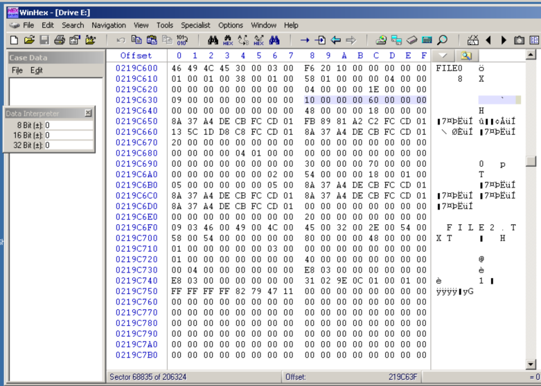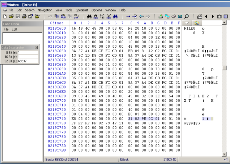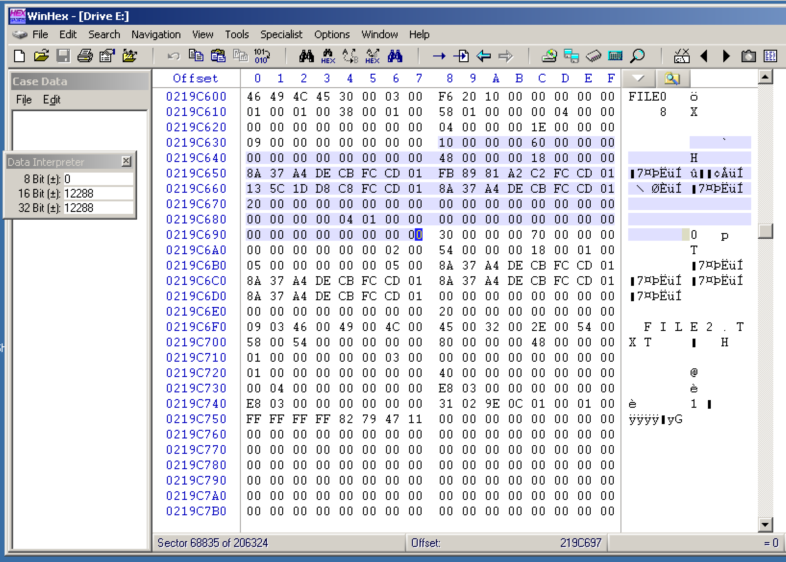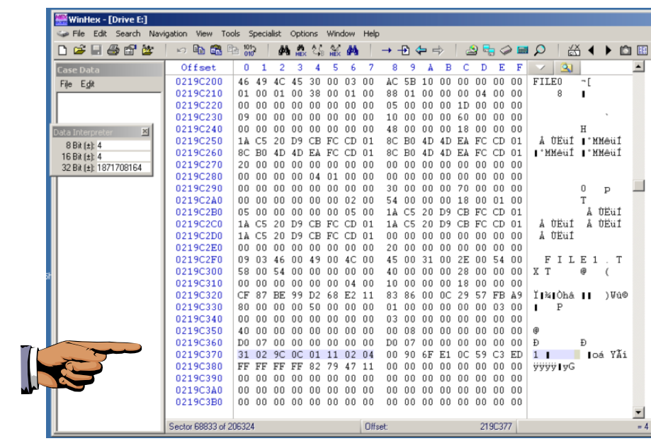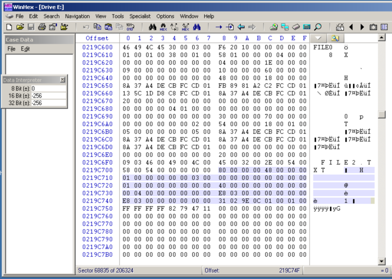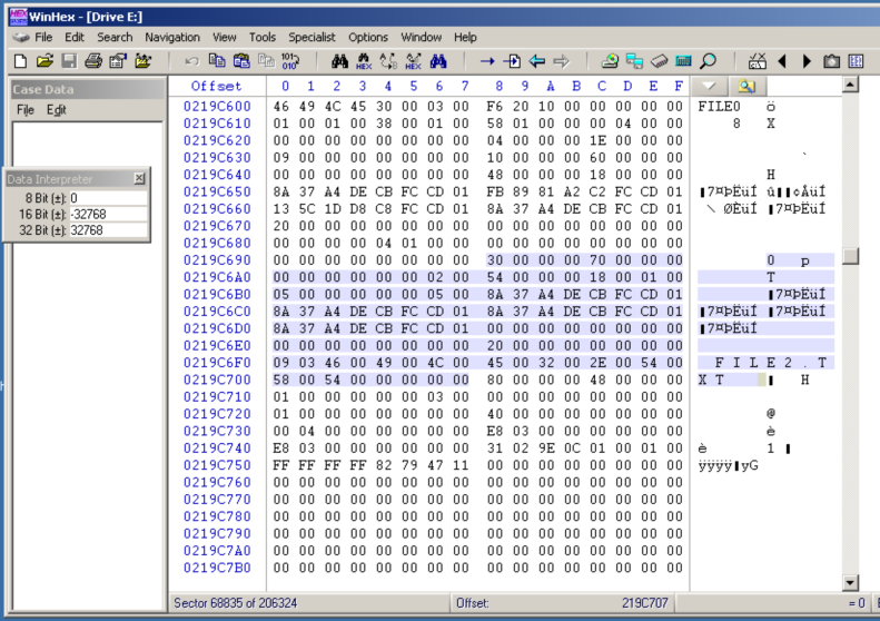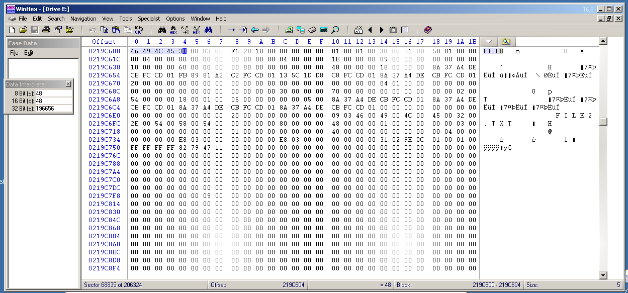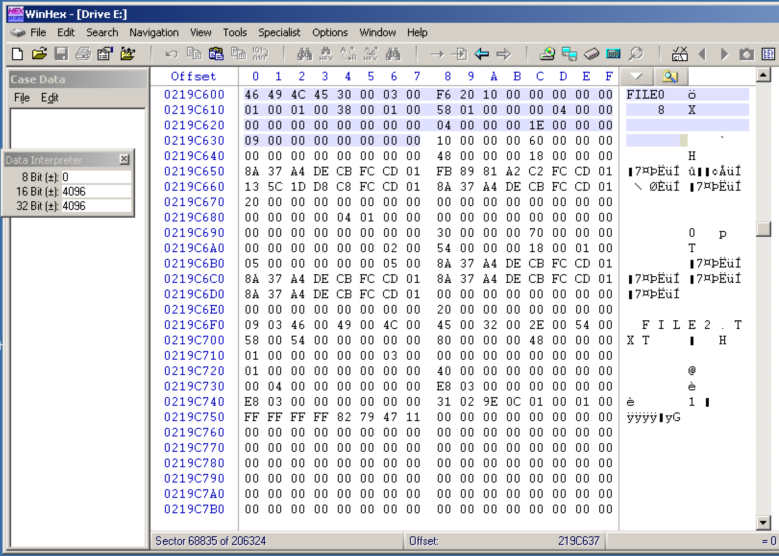 Each MFT record begins with the ASCII text "FILE0".
