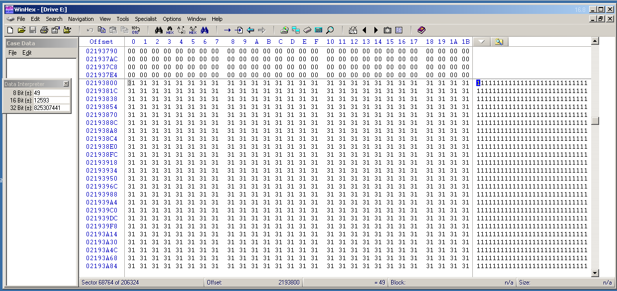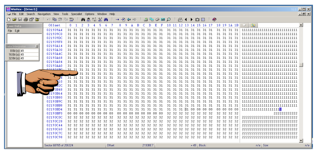 Scroll down in the Hex view until you find the end of the "1" characters.