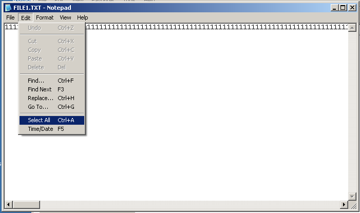 In Notepad, click Edit, "Select All", as shown below.