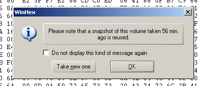 A box pops up saying that a snapshot is reused, as shown below. Directory Browser actually works from a copy of the data called a Snapshot, not from the original disk.
