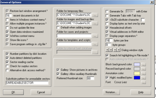 From the WinHex menu bar, click Options, General.