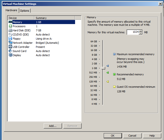 The "Virtual Machine Settings" opens, as shown below.