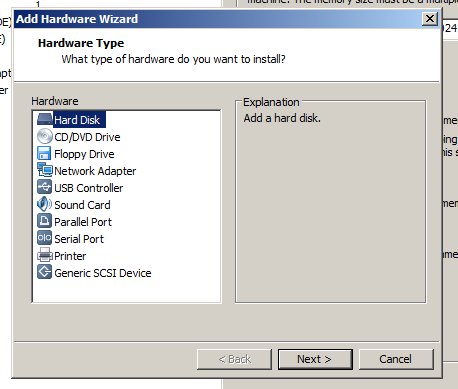 In the left pane, accept the default selection of "Hard Disk".