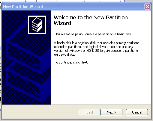 The "New Partition Wizard" opens, as shown below.