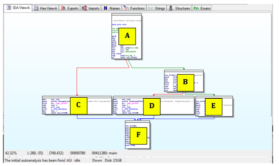 Follow along in IDA Pro and make sure you see what each of the six modules do, and how they correspond to the C source code.
