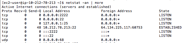 ssh -p 2222 ec2-user@ec2-23-20-142-130.compute-1.amazonaws.com