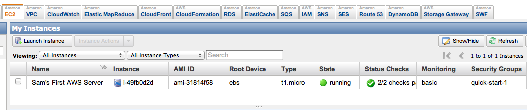 On the right side, in the "My Resources" section, click "1 Running Instance", as shown below: