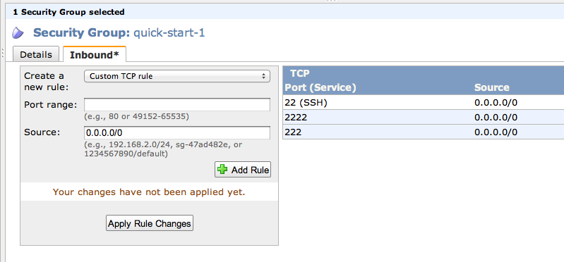 In the lower pane, on the left, enter a "Port range" of "2222". Click the "Add Rule" button.