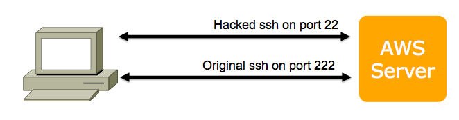To collect real attack traffic, you need to move the hacked ssh to port 22. That will mean the original Amazon ssh will need to move to some other port. These instructions will move it to port 222, as shown below: