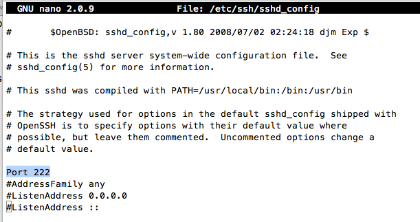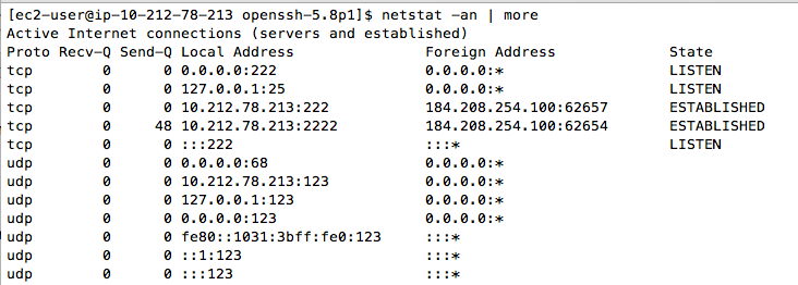 If the change was successful, you should see a process listening on port 222, but no processes listening on port 22, as shown below: