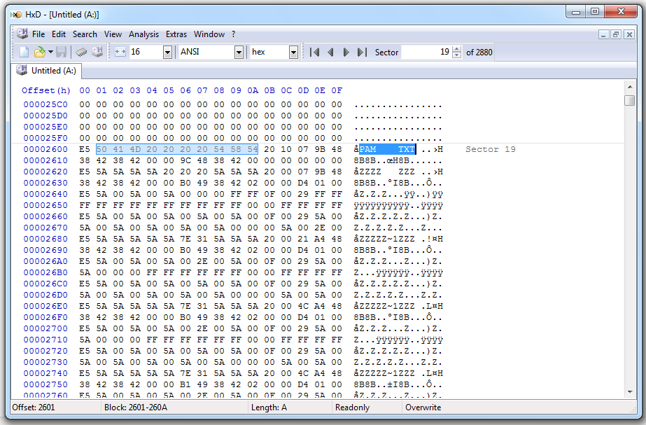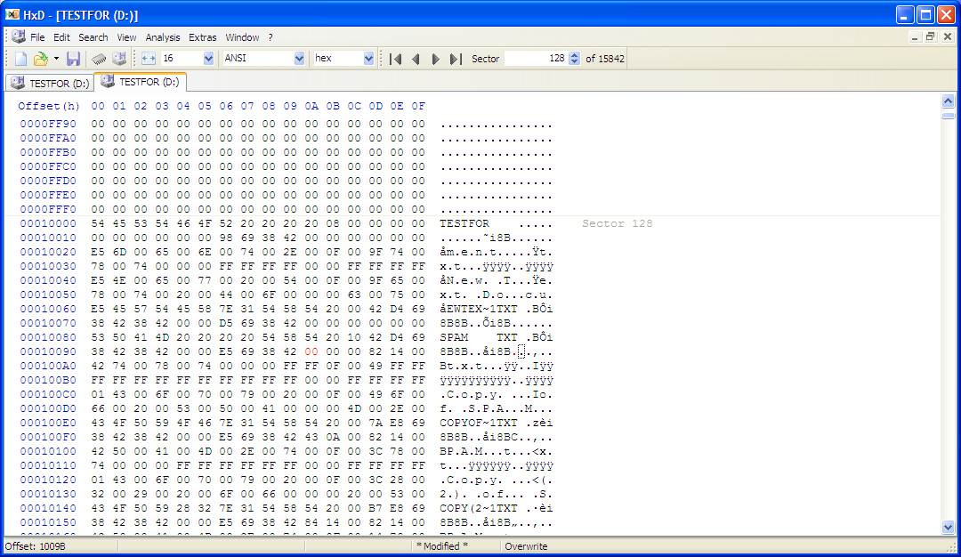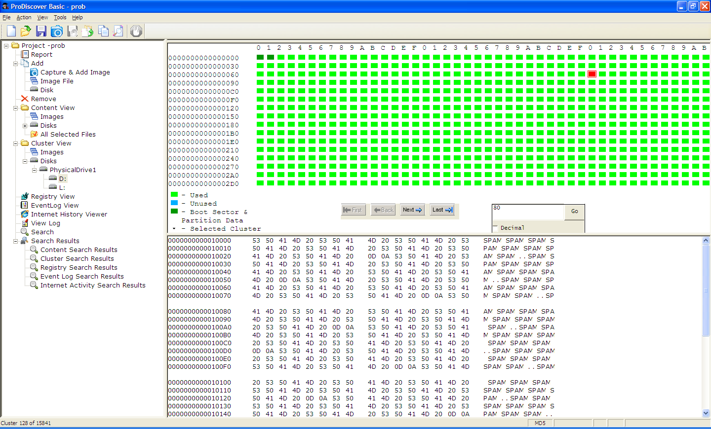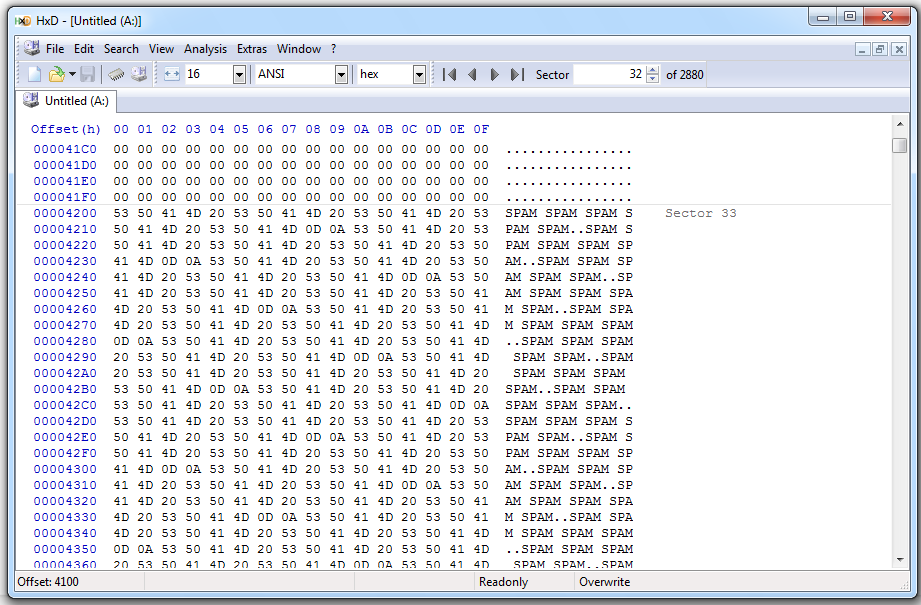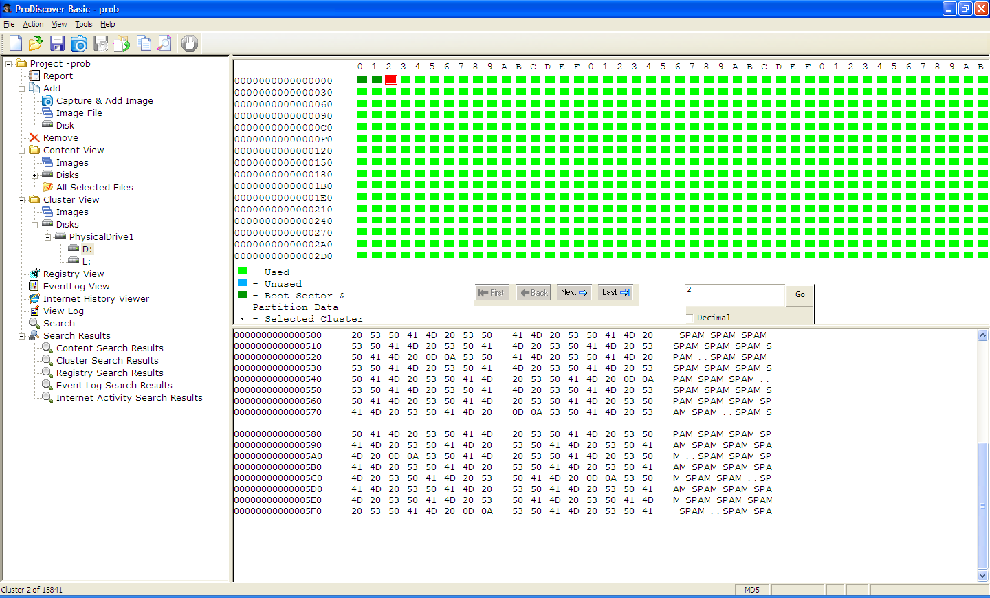 ProDiscover now shows sector 2 filled with SPAM, which is incorrect.