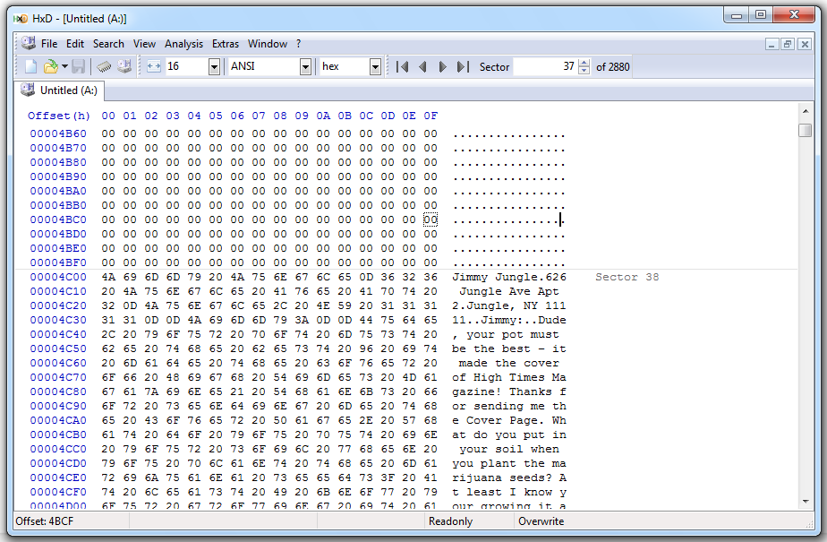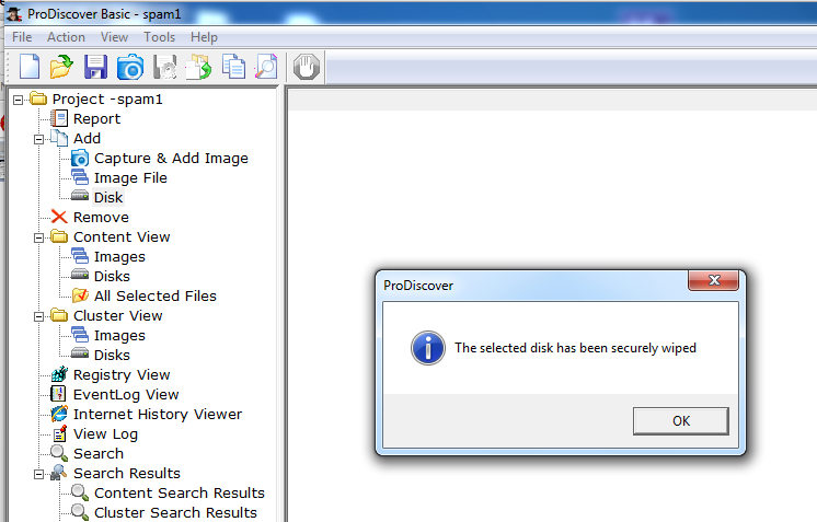 This might seem like a small problem, but it's not! The "Secure Wipe" did not erase all the data, it just overwrote the active data. Here's what ProDiscover did to the contents of the SPAM files: