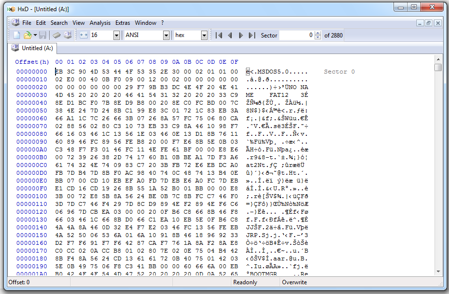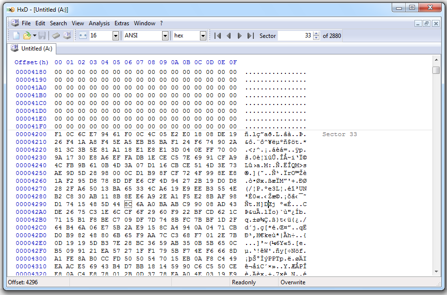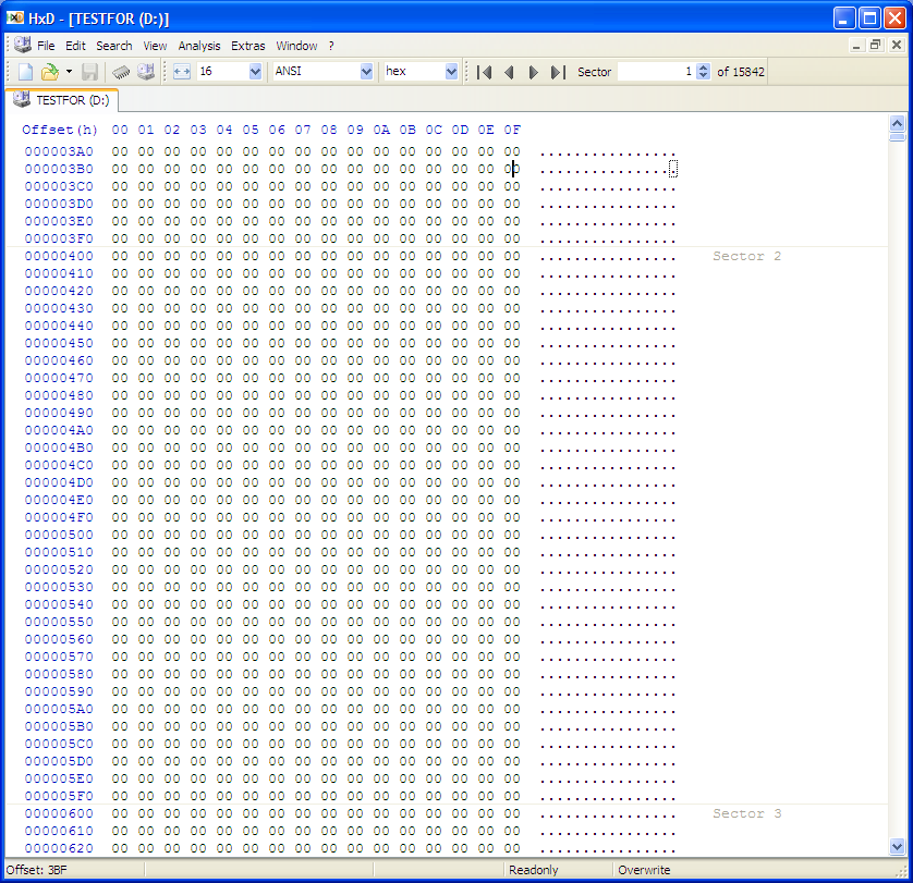 Here is HxD, showing the correct contents of sector 2 (all zeroes):