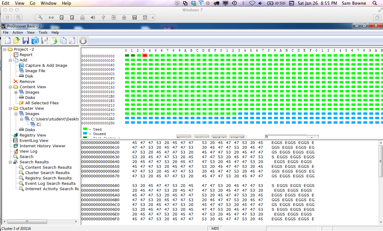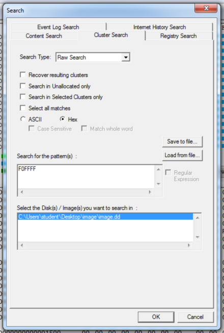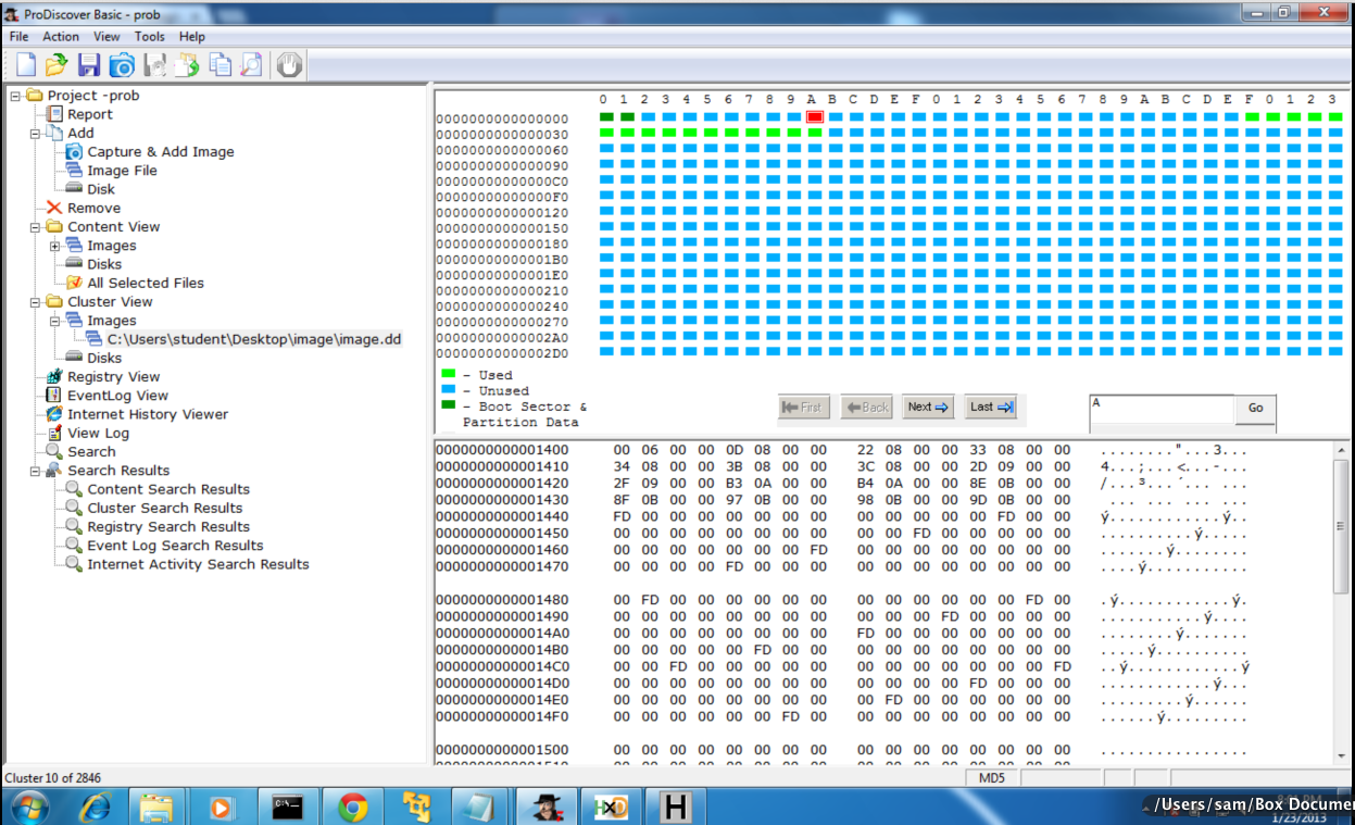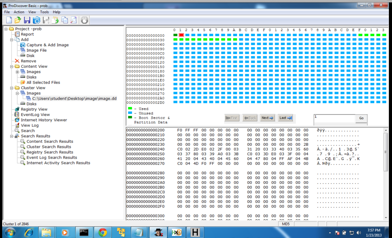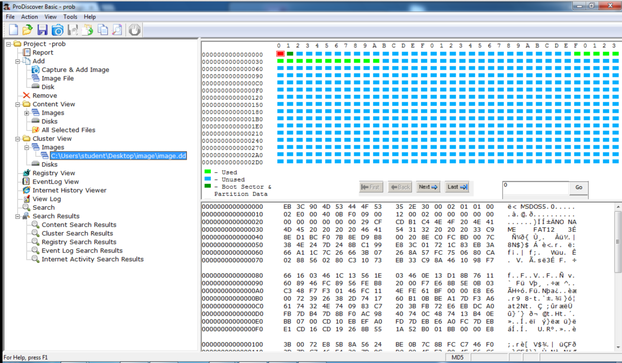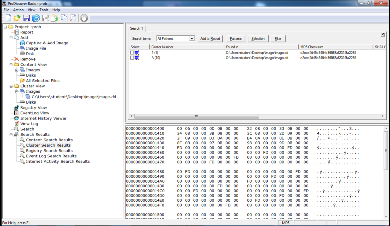I viewed the image.dd file in Cluster view, which shows the raw data in hex.