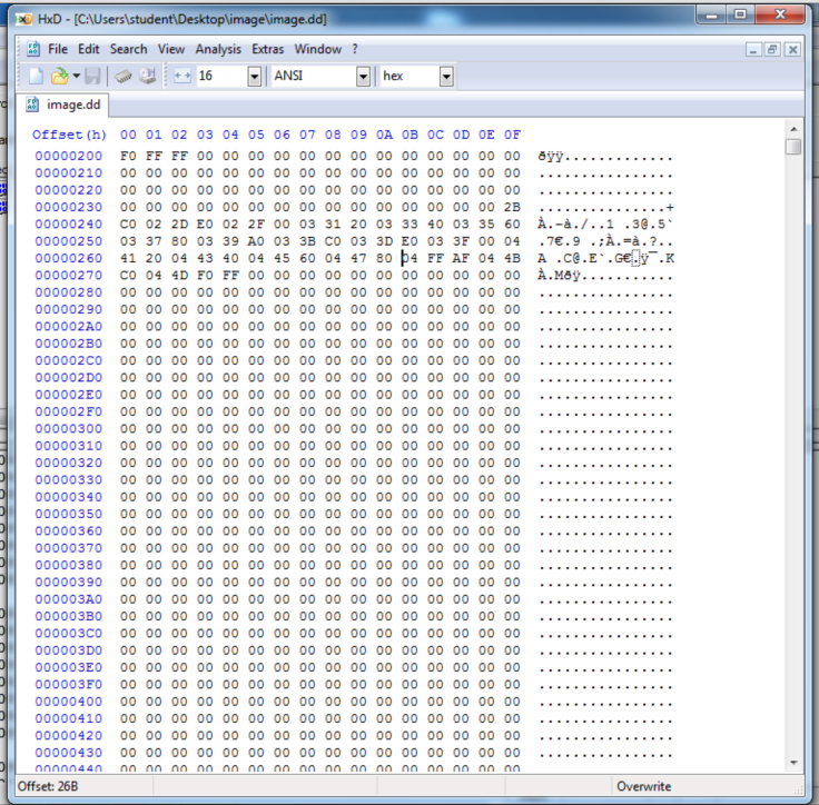 What's going on? I opened the original image.dd file in HxD, a simple hex editor.