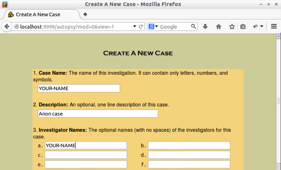 Fill in the form as shown below, replacing "Your-Name" with your own name. Don't use any spaes.