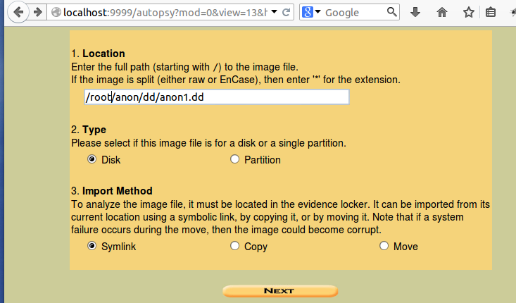 Autopsy opens, as shown below on this page. You will see a warning that Javascript is enabled. You can just ignore it.