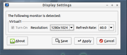 Adjust to resolution to a higher value, such as 1280x1024, as shown below. Then click Save.