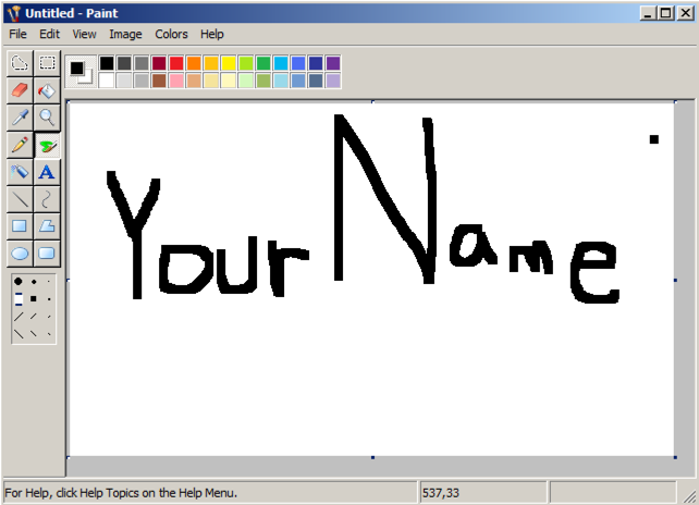 Write your name using the mouse, as shown below. Don't use the literal text "Your Name"--use your own name.