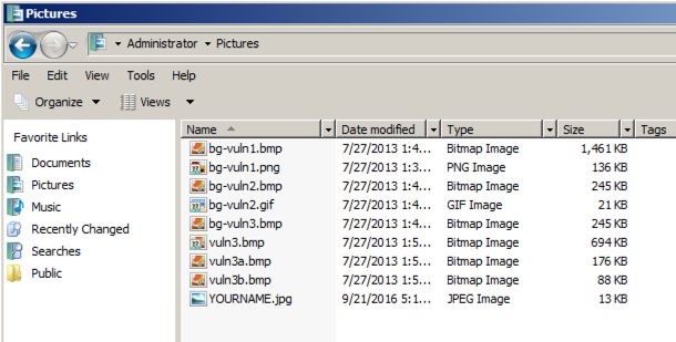 If you are using Windows Server 2008, you see only little icons, not thumbnail versions of the pictures, as shown below.