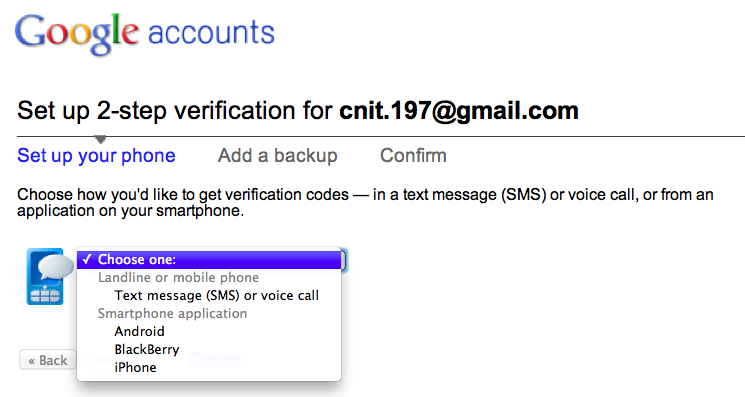 Choose how you want to get the codes. There are several options for different types of phones, as shown below: