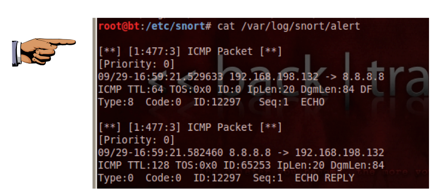 snort -i eth0 -c /etc/snort/snort-test.conf -l /var/log/snort