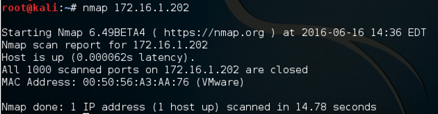 Open a Terminal window and execute this command, to run an Nmap scan of your Kali64 machine, as shown below.