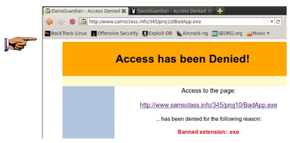 You should see a page titled "DansGuardian - Access Denied", telling you "Access has been Denied!", as shown below: