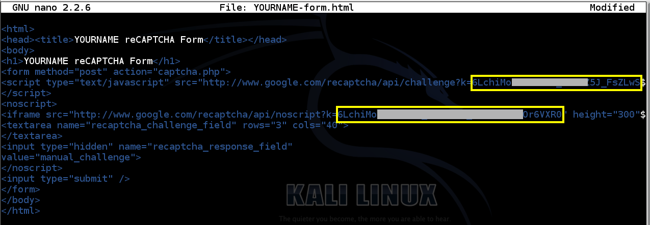 <head><title>YOURNAME reCAPTCHA Form</title></head>