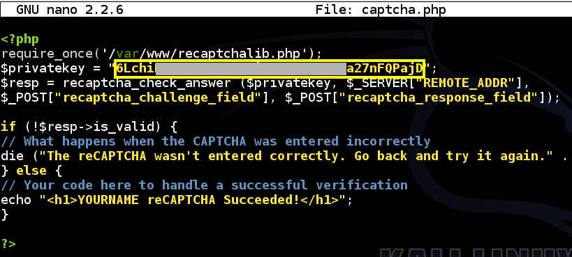 echo "<h1>YOURNAME reCAPTCHA Succeeded!</h1>";