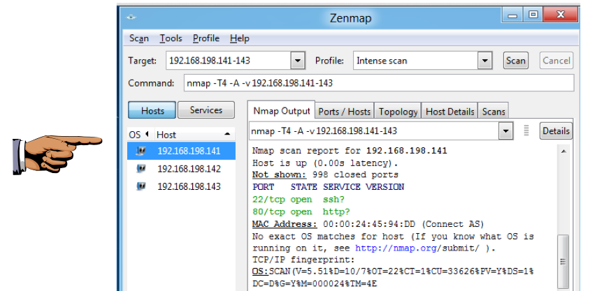 in the left pane of the Zenmap window, as shown below: