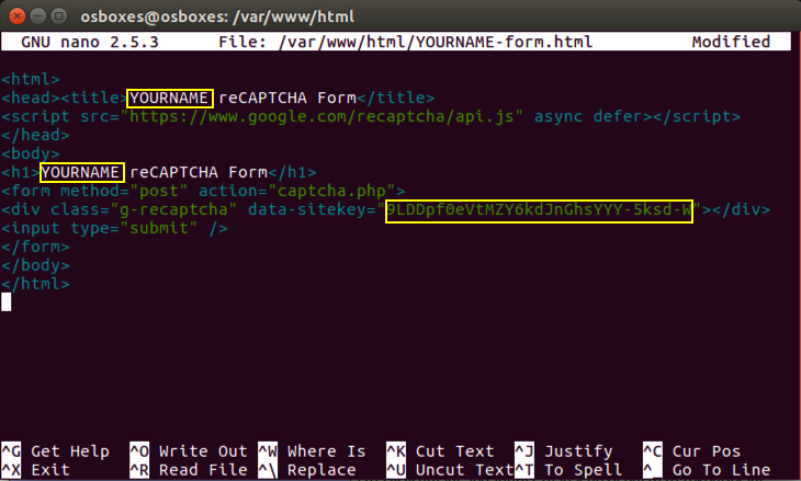<head><title>YOURNAME reCAPTCHA Form</title>