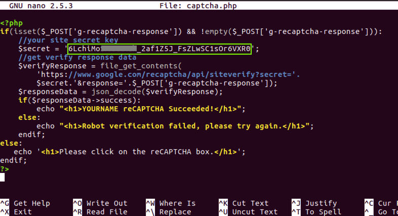 echo "<h1>YOURNAME reCAPTCHA Succeeded!</h1>";