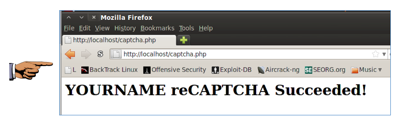 You should see the message "YOURNAME reCAPTCHA Succeeded!", as shown below.