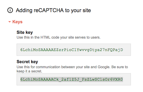 $secret = '6LchiMoSAAAAACk_2af1Z5J_FsZLwSC1sOr6VXR0';