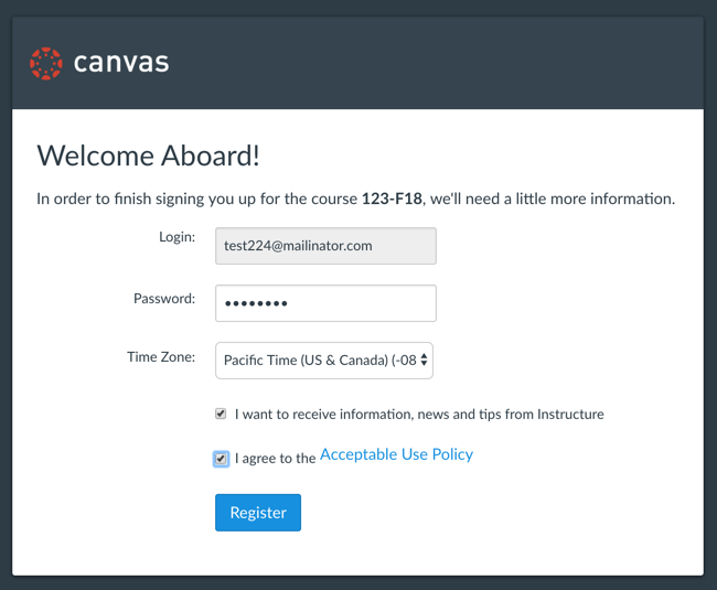 CCSF StudentsOnce you are enrolled and added to the course, your instructor will create a Canvas account for you to use.Note: this class does not use the CCSF canvas, but an alternate server at this URL: https://canvas.instructure.com/ After your instructor creates your account, you will receive an email at your CCSF student email like this: Click "Get Started" and then click the green Accept button. Then click "Create My Account". Choose your password and time zone, as shown below, and click Register. Canvas appears, with quizzes and projects, as shown below.