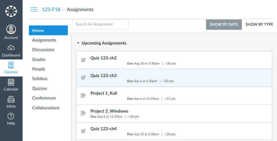You will receive an email as shown below. Click the link and complete the registration process. You can now use Canvas, with quizzes and projects, as shown below.