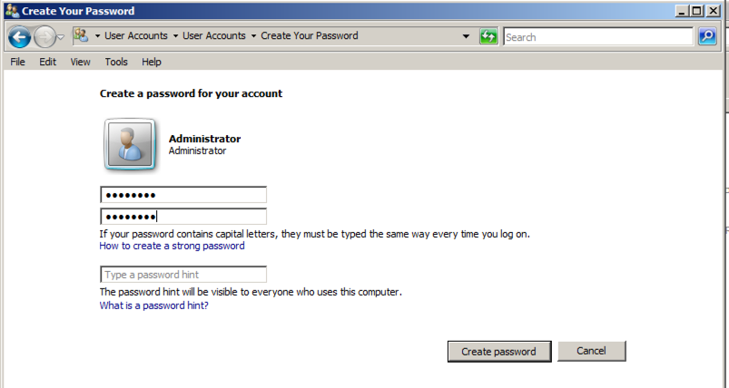 Enter a password of P@ssw0rd in both the password boxes, as shown below.