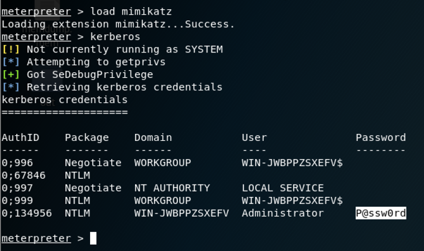 To steal the plaintext password from memory, we need to run as SYSTEM, which is more powerful than the Administrator account.