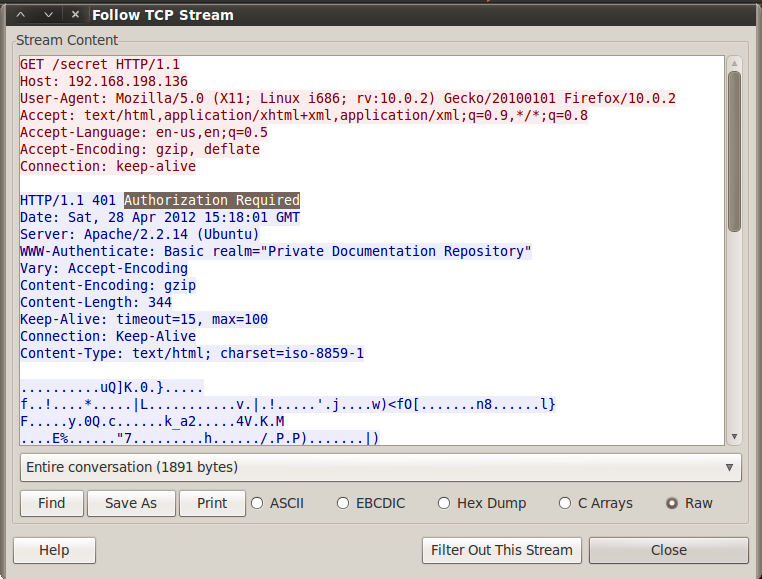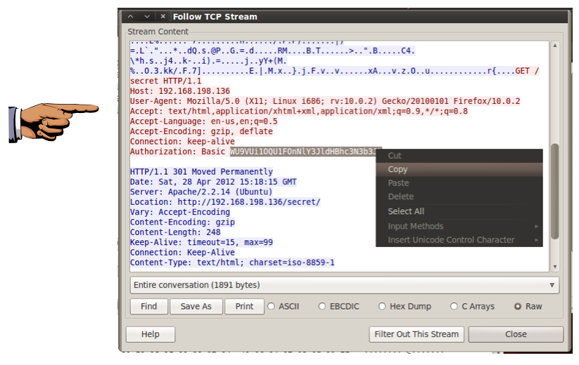 Scroll down to find the "Authorization: Basic" message, shown below: