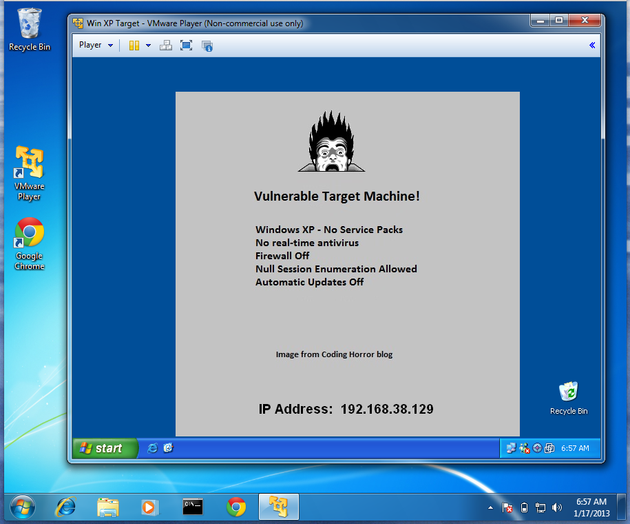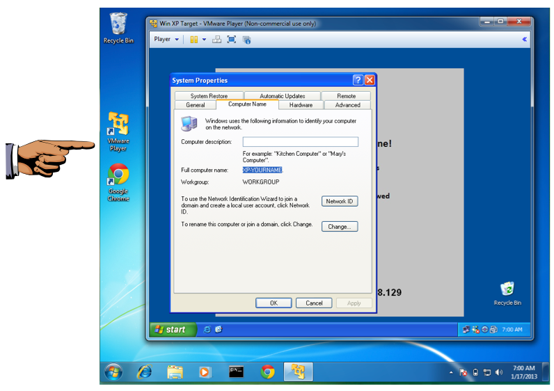You should see a Windows XP desktop in the VMware Player window, as shown below: