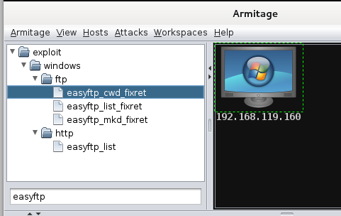 Click easyftp_cwd_fixret, hold down the left mouse button, drag it onto the computer icon showing your target's IP address, and drop it there.