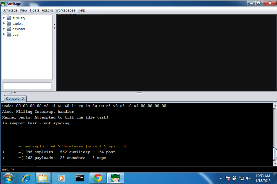 curl http://www.fastandeasyhacking.com/download/armitage150813.tgz > armitage150813.tgz tar xzf armitage150813.tgz cd armitage msfdb init ./armitage